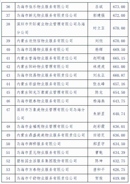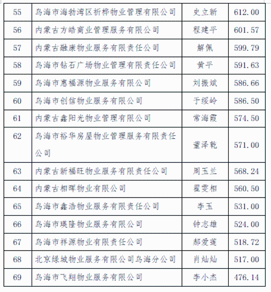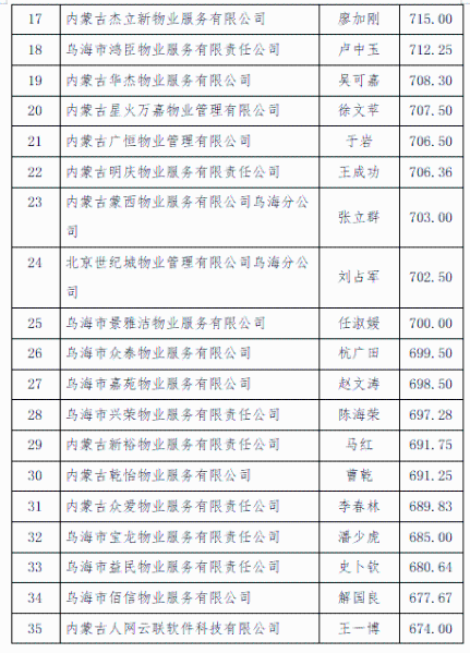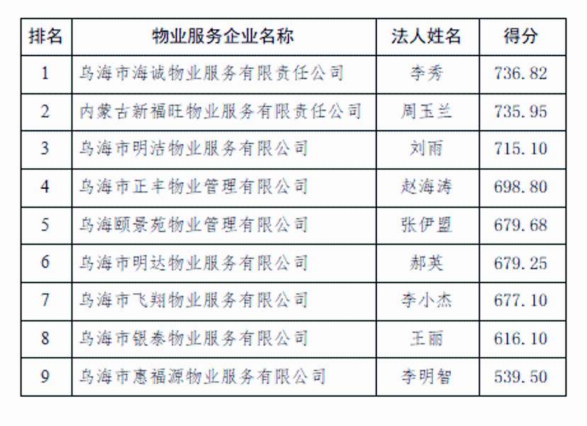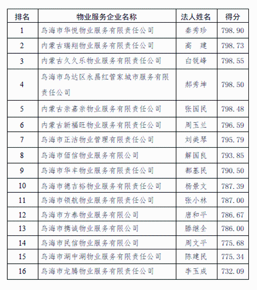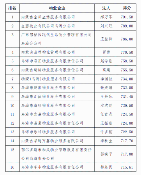 2.乌达区2025年第二季度物业服务企业信用评定排名