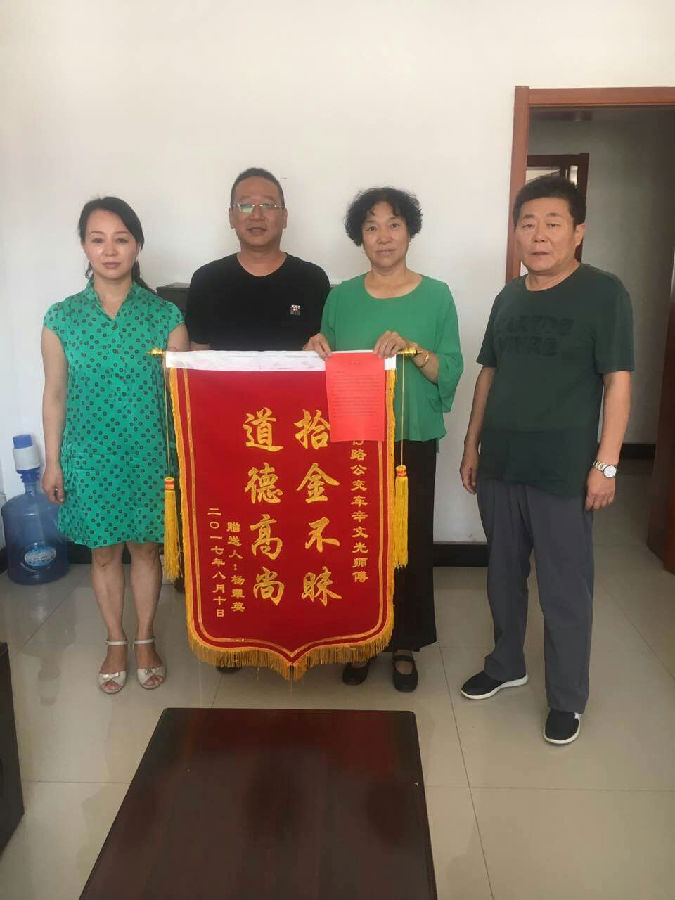 拿回钱包后,杨女士激动万分,专程写了感谢信并制作了锦旗送到公交海勃湾区分公司,感谢公交公司对职工德育方面的培养,在普遍认为物欲横流、世风日下、雷锋精神渐行渐远的今天,培养出了辛文光车长这样拾金不昧、助人为乐的新时代雷锋!
