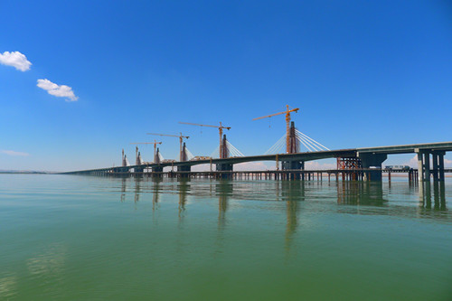 2016年9月1日8时50分,乌海湖大桥完成中跨最后一段现浇梁,至此乌海湖大桥主桥悬浇梁宣告成功合拢,全桥贯通。 乌海湖大桥工程于2012年开工建设,该桥桥梁全长5120米,其中主桥长760米,孔跨布设为(80+5×120+80)米部分斜拉结构,最大悬臂长度59米,共分16各梁段,总投资11.72亿元。主桥合拢后,桥面摊铺、交通工程及机电工程等后续施工将全面展开。