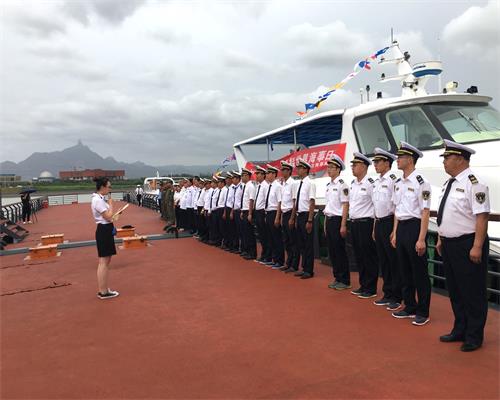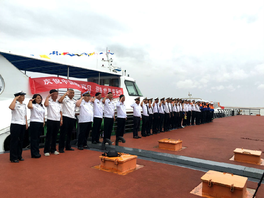 上午9时,内蒙古乌海湖旅游发展有限公司的乌海湖01、乌海湖02、乌海湖03游船,乌海市地方海事局海巡艇挂满旗停靠在滨河乌海湖游客服务中心码头,统一鸣笛1分钟。所有执法人员及水运工作者均着制服并举手庄严敬礼。之后,各单位整齐列队宣读倡议书,表达了热爱祖国、热爱海洋、热爱乌海家乡的情怀;弘扬了郑和精神,发展海洋经济,关爱蓝色家园;以海洋般宽阔的视野观察世界,用海洋般的胸怀拥抱世界,用海洋般的情怀建设美好家乡。