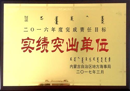 日前,我局获得由自治区地方海事局颁发的自治区海事系统“2016年度完成责任目标实绩突出单位”荣誉称号。2016年,乌海市地方海事局在自治区地方海事局和市交通运输局的领导下,经全体海事人员的共同努力,认真推进“四型”海事建设,打造“三化”海事队伍,在学习中丰富了头脑,在实践中锻炼了队伍,在改革中上提高水平,取得了一定的成绩。